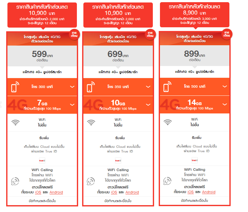 – เมื่อซื้อเครื่องพร้อมแพ็กเกจ 899 บาท