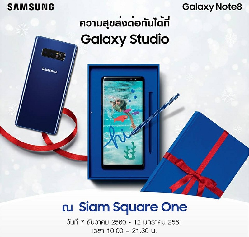 พร้อมกับเปิดอบรมการใช้งาน Galaxy Note8 แบบไม่มีค่าใช้จ่ายโดยผู้เชี่ยวชาญจาก Samsung ซึ่งจัดขึ้นระหว่างวันที่ 7 ธันวาคม 2560 – 12 มกราคม 2561 โดยเพื่อนๆ ที่สนใจสามารถไปสัมผัสกับนวัตกรรมใหม่ล่าสุด พร้อมโปรโมชั่นสุดพิเศษได้ที่ Galaxy Studio Siam Square One