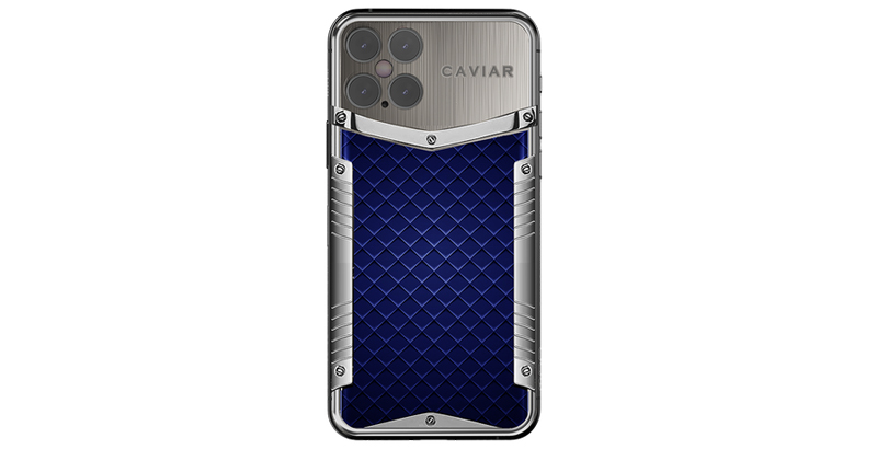 – Caviar iPhone 12 Pro Navy Blue วัสดุที่ใช้เป็นไทเทเนียมตรงกลางเป็นดีไซน์เป็นหินสีน้ำเงิน ราคา 4,880 ดอลลาร์สหรัฐฯ หรือประมาณ 152,400 บาท