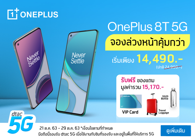 ดีแทค เปิดจอง OnePlus 8T ในราคาสุดพิเศษพร้อมโปรโมชั่นดังนี้