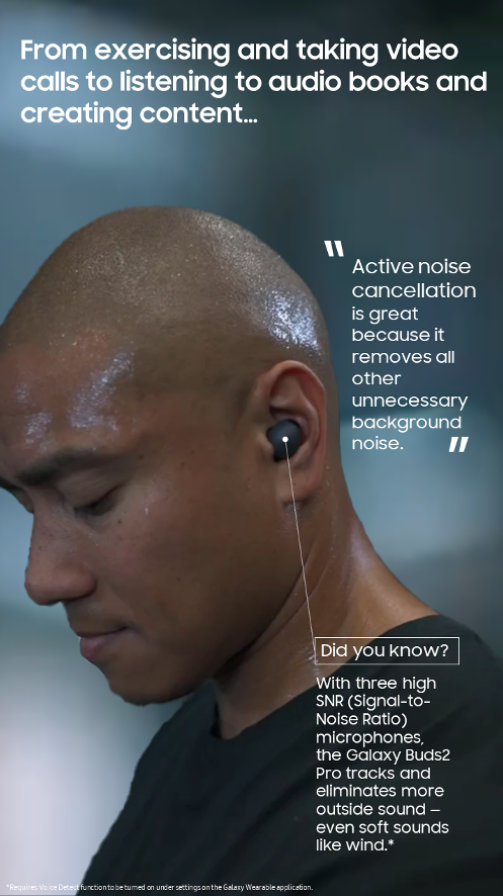จากการออกกำลังกาย สู่วิดีโอคอล ไปจนถึงการฟัง audio book และการสร้างสรรค์คอนเทนต์ ฟิลิ ทาปาล้วนพึงพอใจเป็นอย่างยิ่งกับ Galaxy Buds2 Pro และด้วยฟีเจอร์ Active noise cancellation ที่ช่วยให้เขาสามารถสนุกไปกับทุกๆ กิจกรรม