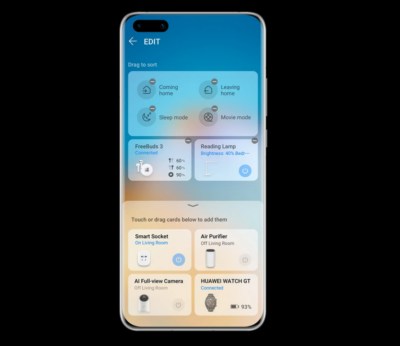 • ประสบการณ์ทุกสถานการณ์อยู่ในแผงควบคุมเดียว ปัดขึ้นจากมุมล่างซ้ายหรือขวาเพื่อเข้าถึงแผงควบคุมหลายอุปกรณ์ คุณสามารถเชื่อมต่อกับอุปกรณ์ใกล้เคียงและควบคุมเครื่องใช้ไฟฟ้าภายในบ้านได้อย่างง่ายดาย แผงนี้เปลี่ยนโทรศัพท์ของคุณเป็นอุปกรณ์พิเศษ นอกจากนี้ยังแนะนำอุปกรณ์ที่เหมาะสมที่สุดสำหรับสิ่งที่คุณทำ นี่คือจุดเริ่มต้นของโลกที่ชาญฉลาดและเชื่อมโยงกันอย่างเต็มที่