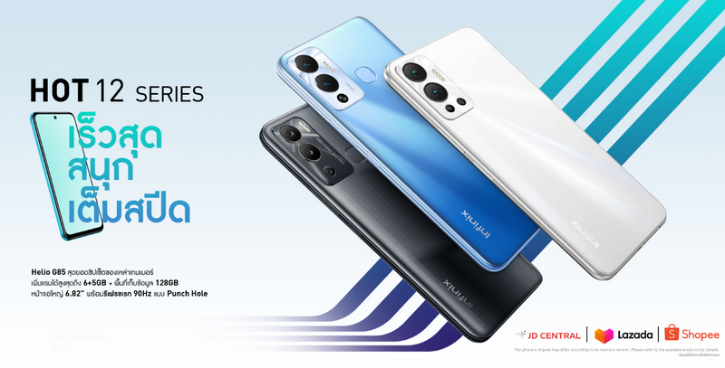 Infinix HOT 12 Play ราคา 3,999 บาท (64GB), 4,299 บาท (128GB) (ข้อมูล ณ เดือน มิ.ย. 66)