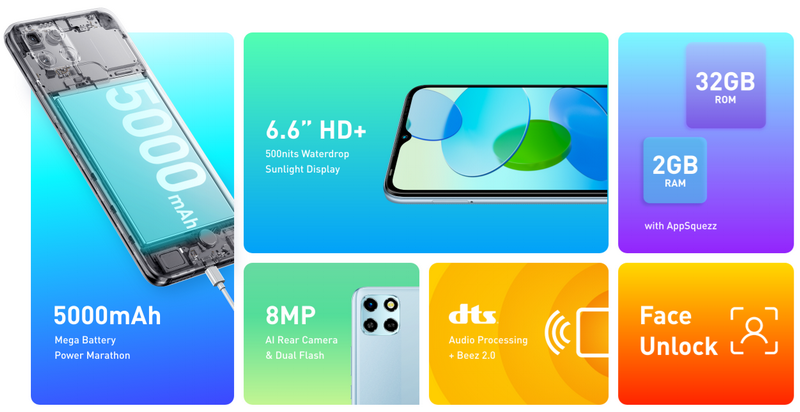 • 2GB RAM+32GB ROM with AppSqueeze