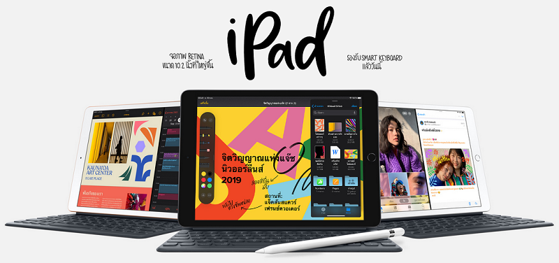 – เหมือนคอมพิวเตอร์แต่ไม่เหมือนคอมพิวเตอร์ไหนๆ iPad ใหม่ รวมขุมพลังและความสามารถของคอมพิวเตอร์เข้ากับความง่ายในการใช้งานและความอเนกประสงค์ อย่างที่คุณไม่เคยคิดว่าคอมพิวเตอร์จะทำได้ และตอนนี้ iPad ก็ยิ่งเก่งหลากหลายมากกว่าเดิม ด้วยจอภาพ Retina ขนาด 10.2 นิ้วที่ใหญ่ขึ้น รองรับ Smart Keyboard ขนาดมาตรฐาน รวมถึงความสามารถใหม่ๆ อันน่าทึ่งของ iPadOS เรียกว่าสนุกเหลือเชื่อและมีความเป็น iPad อยู่ในทุกอณู
