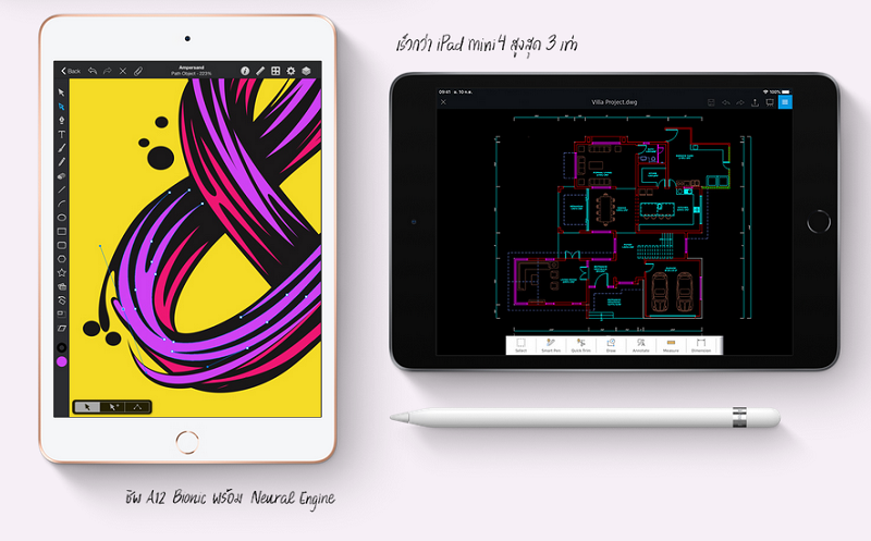 – iPad mini มินิเหมือนเคย แต่พลังยิ่งใหญ่กว่าที่เคย ใครๆ ก็รัก iPad mini ที่ขนาดและความสามารถ แล้ววันนี้ก็ยังมีเหตุผลให้รักมากขึ้นไปอีก ทั้งชิพ A12 Bionic ที่มาพร้อม Neural Engine, จอภาพ Retina ขนาด 7.9 นิ้ว พร้อมการแสดงผลแบบ True Tone และ Apple Pencil ที่ให้คุณจดบันทึกไอเดียสุดยิ่งใหญ่ได้ทุกที่ทุกเวลาไม่ว่าจะปิ๊งขึ้นมาตอนไหน พูดง่ายๆ ก็คือยังคงเป็น iPad mini แต่มีอะไรดีๆ มากกว่าที่เคยนั่นเอง