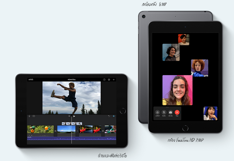 – ต่อติดถึงกันถ่ายในแบบ HD สนุกไปกับ AR กล้องหน้าและกล้องหลังของ iPad mini ให้คุณถ่ายรูปที่สวยสดงดงามและวิดีโอคุณภาพระดับภาพยนตร์ ซึ่งความสนุกก็ไม่ได้หมดเพียงเท่านี้ เพราะคุณยังสามารถโทร FaceTime กับเพื่อนๆ สแกนเอกสารแล้วทำเครื่องหมายหรือจะใช้เทคโนโลยีความจริงเสริมเพื่อวางแผนตกแต่งห้องนั่งเล่นก็ยังได้