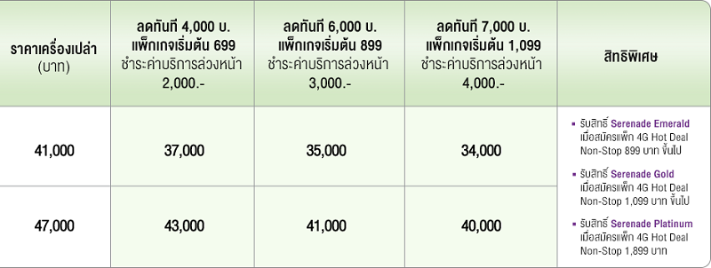 – ราคาพิเศษ 40,000 บาท สมัครแพ็กเกจเริ่มต้น 1,099 บาท พร้อมชำระค่าบริการล่วงหน้า 4,000 บาท