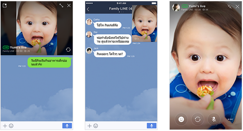 พร้อมรองรับการถ่ายทอดสดไปสู่ผู้รับชมมากถึง 200 คนเลยผู้ใช้งานสามารถเริ่มต้นถ่ายทอดสดได้ง่าย ๆ ผ่านการคลิกเครื่องหมายโทรศัพท์ตรงด้านบนสุดของห้องสนทนา จากนั้น ก็คลิก “LIVE” ภาพเคลื่อนไหวจะปรากฏสู่สายตาผู้ร่วมสนทนาในห้องเดียวกันทันที