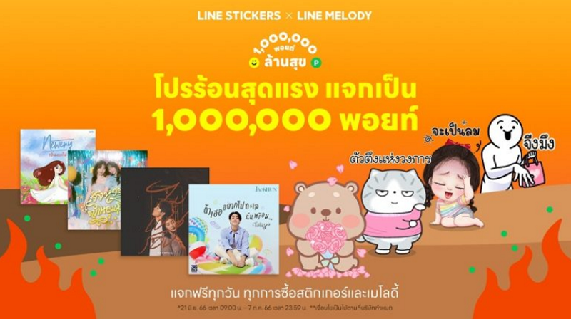 LINE STICKERS จับมือ LINE MELODY ปล่อย “โปรร้อนสุดแรง แจกเป็นล้านพอยท์” แจก LINE POINTS ให้ ช้อป-ใช้-กิน-เที่ยว ฟรีไม่อั้น กว่าล้านพอยท์