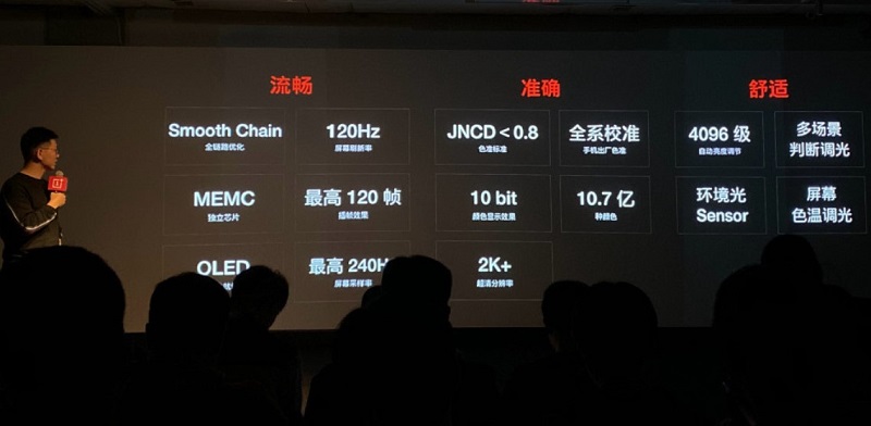 หลังจากที่ก่อนหน้านี้ทาง OnePlus ปล่อยภาพโปสเตอร์เชิญร่วมงานที่ดูเหมือนว่าจะมีการโชว์เทคโนโลยีเกี่ยวกับหน้าจอแสดงผล ล่าสุดในงาน Screen Technology 2020 ดังกล่าว ก็ได้มีการเปิดตัวหน้าจอ OLED ความละเอียด Quad HD+ ที่มีอัตราการรีเฟรช 120Hz รวมถึงทาง Pete Lau ผู้บริหารของ OnePlus ยังได้กล่าวอีกว่าในปีนี้จะมีสมาร์ทโฟนที่ใช้จอ 90Hz ด้วย