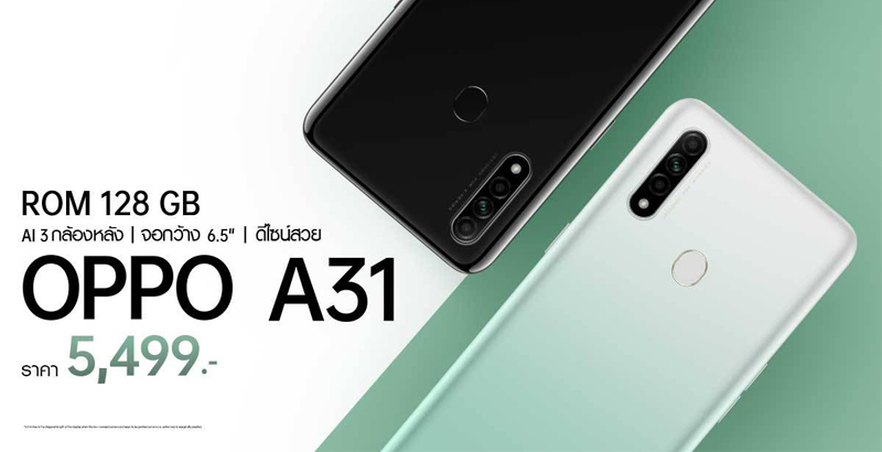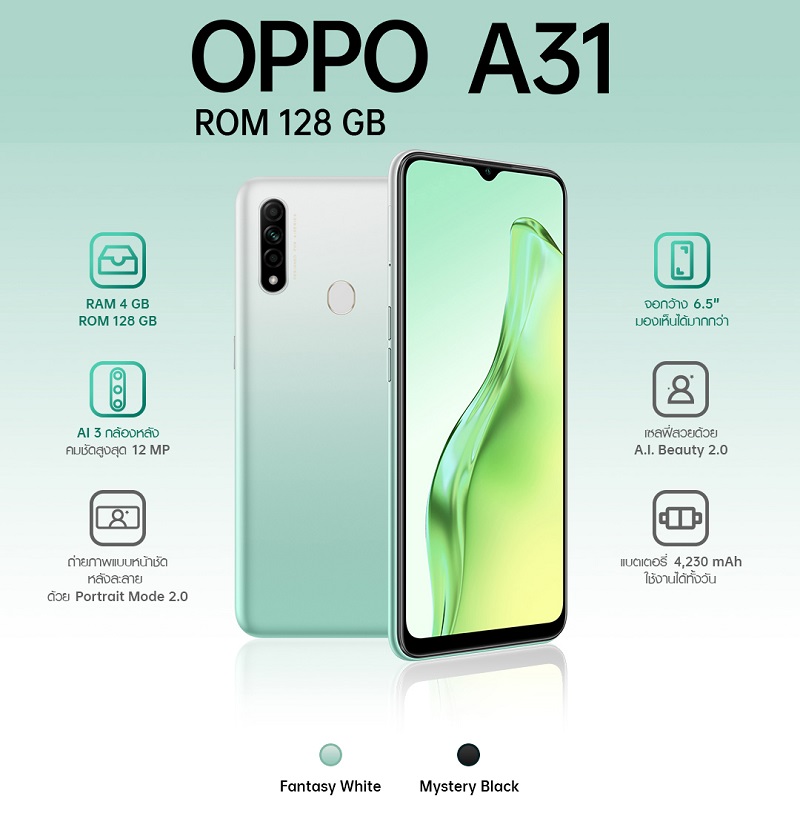 OPPO A31 สเปคคุ้มค่า ราคาโดนใจกับ ROM 128GB พร้อมให้คุณเป็นเจ้าของแล้ววันนี้ ในราคาเพียง 5,499 บาท เท่านั้น!