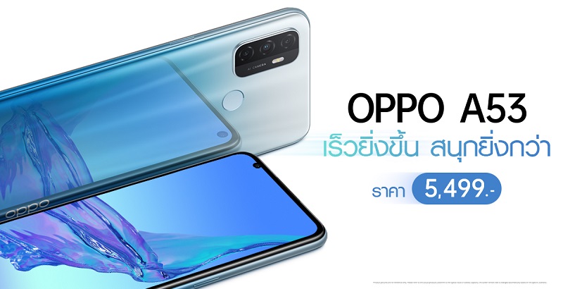OPPO เปิดตัวสมาร์ตโฟนรุ่นล่าสุดจาก A Series หลังจากได้รับกระแสตอบรับเป็นอย่างดีจากรุ่นก่อนหน้า ที่มาพร้อมกับจุดเด่นและความคุ้มค่า โดย OPPO A53 เปิดตัวภายใต้สโลแกน “เร็วยิ่งขึ้น สนุกยิ่งกว่า” พร้อมตอบสนองทุกความต้องการของผู้บริโภคไม่ว่าจะเป็นด้านของสเปก, กล้องในราคาสุดคุ้ม สามารถตอบโจทย์กลุ่มผู้ใช้งานได้เป็นอย่างดี พร้อมให้คุณเต็มอิ่มไปกับทุกความบันเทิง