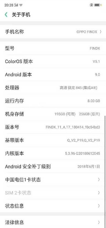 ส่วนข้อมูลจากภาพแคปเจอร์หน้าจอระบุว่า OPPO Find X มาพร้อมขุมพลัง Snapdragon 845 แรม 8GB คู่ความจุ 256GB และทำงานบนระบบปฏิบัติการ ColorOS 5.1 บนพื้นฐาน Android 9.0 แต่เนื่องจาก Android 9.0 หรือ Android P ยังไม่เปิดตัว ทำให้ไม่แน่ใจว่าภาพดังกล่าวเป็นของจริงหรือไม่