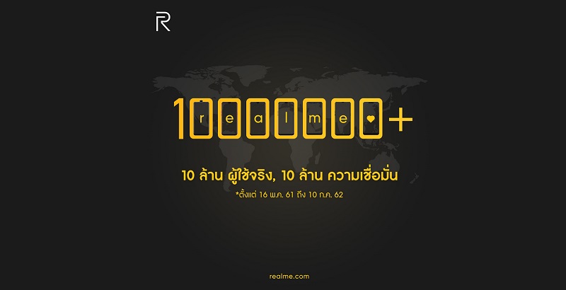 realme ไม่หยุดพัฒนาสู่การเป็นสมาร์ทโฟนครองใจคนรุ่นใหม่ ล่าสุดมีผู้ใช้ทั่วโลกทะลุ 10 ล้านคนแล้ว!!