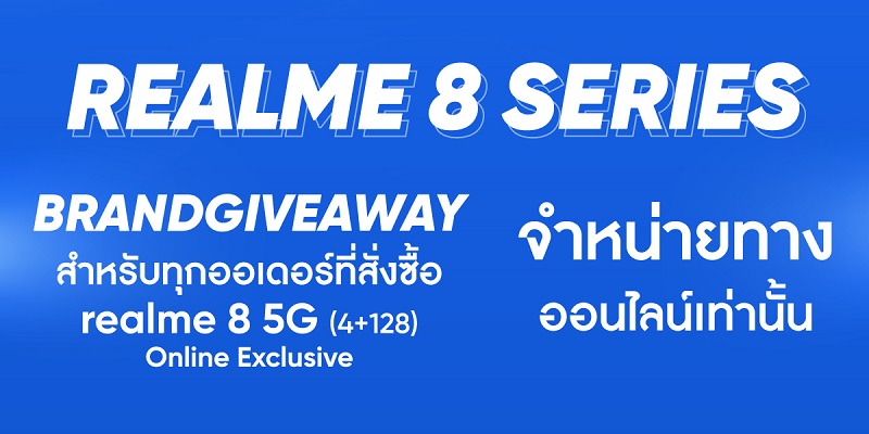 พบกับ realme 8 5G (4GB + 128GB) BRANDGIVEAWAY เฉพาะ 5 พฤษภาคมนี้ วันเดียวเท่านั้น!