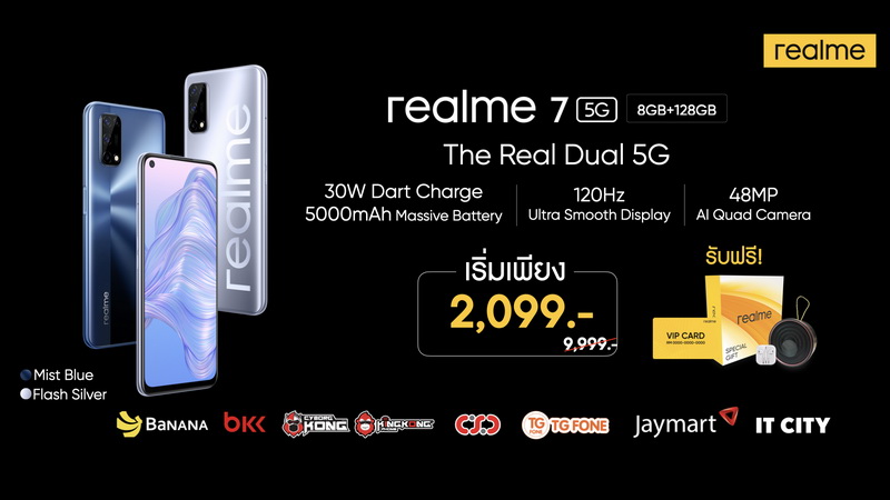 พิเศษสุด!! สำหรับช่องทาง AIS, TrueMoveH และ dtac สามารถเป็นเจ้าของ realme 7 5G ได้ในราคาเริ่มต้นเพียง 2,099 บาทเท่านั้น