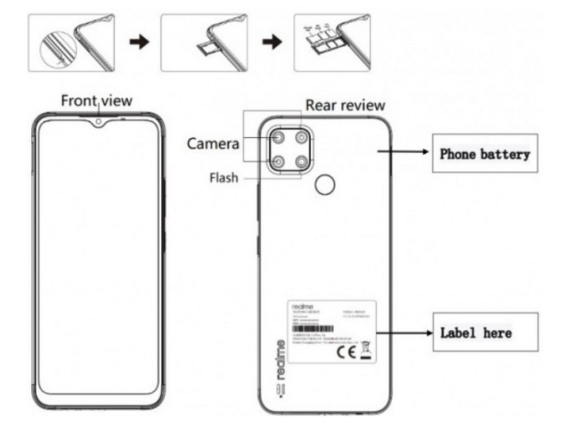 แต่จากข้อมูลของ FCC ได้มีภาพร่างดีไซน์การออกแบบหลุดออกมาให้เราได้ยลโฉมกัน โชว์ให้เห็นหน้าจอมีรอยบากทรงหยดน้ำ โมดูลกล้องสี่เหลี่ยมด้านในมีกล้องหลัง 3 ตัว พร้อมไฟแฟลช ถัดลงมาเป็นเซ็นเซอร์สแกนลายนิ้วมือ นอกจากนี้ยังรองรับช่องใส่ซิมการ์ดแบบ Triple Slot อีกด้วย