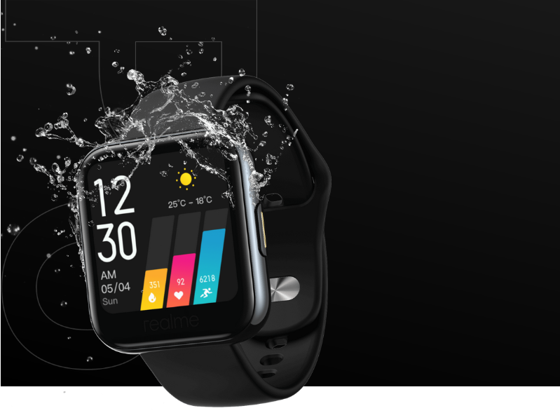 • Real Quality IP68 กันละอองฝน realme Watch มาพร้อมกับมาตรฐาน IP68 กันละอองฝน* ช่วยให้คุณล้างมือได้โดยไม่ต้องถอดนาฬิกาออก คุณสามารถเชื่อมั่นในคุณภาพอันดีเยี่ยมของเราได้แน่นอน เพราะ realme Watch ทุกเครื่องได้ผ่านการทดสอบมาอย่างเข้มงวดก่อนออกจากโรงงาน
