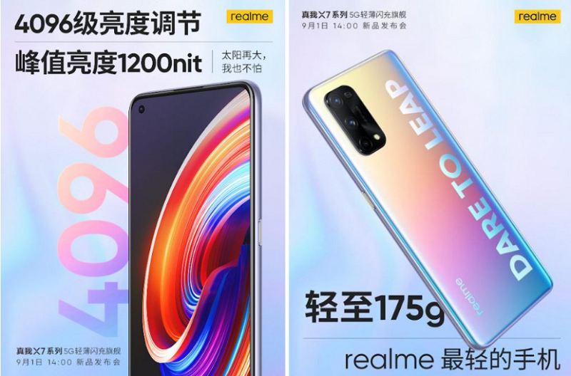 โดย realme X7 Series จะเปิดตัวที่ประเทศจีน 1 กันยายนนี้ มาพร้อมหน้าจอเจาะรู AMOLED อัตรา Refresh Rate สูง 120Hz ความสว่าง 1200 nits ปรับความสว่าง 4096 ระดับ จาก Samsung และมีน้ำหนัก 175 กรัม