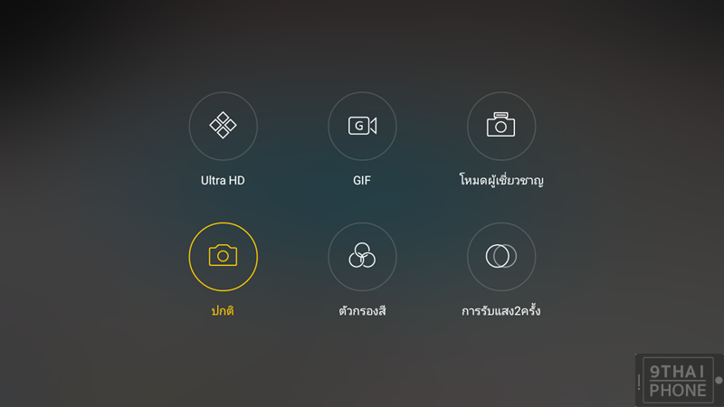 โหมดถ่ายภาพปกติ มีให้เลือกเปิดใช้งาน HDR, แฟลช, เลือกรูปแบบในการกดถ่ายภาพ, ตั้งเวลาในการถ่ายภาพ และเลือกปรับอัตราส่วนภาพถ่ายตามที่ต้องการ