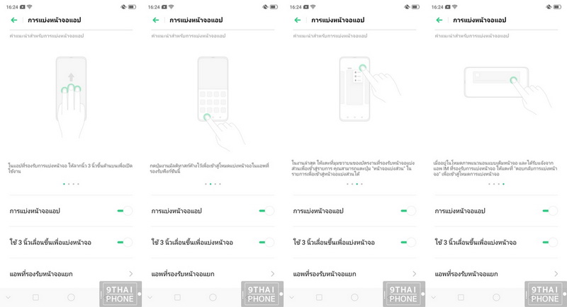 สำหรับฟังก์ชัน Split Screen หรือโหมดการใช้งาน 2 หน้าจอ สามารถทำได้หลายรูปแบบ อาทิ ใช้ 3 นิ้วลากบนหน้าจอ และกดไปที่ปุ่ม Recent Apps เป็นต้น