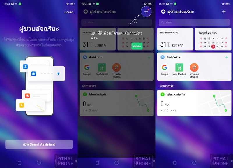เมื่อปัดหน้าจอซ้ายสุดไปทางขวาจะพบกับหน้าผู้ช่วยอัจฉริยะ หรือการเปิดใช้งาน Smart Assistant