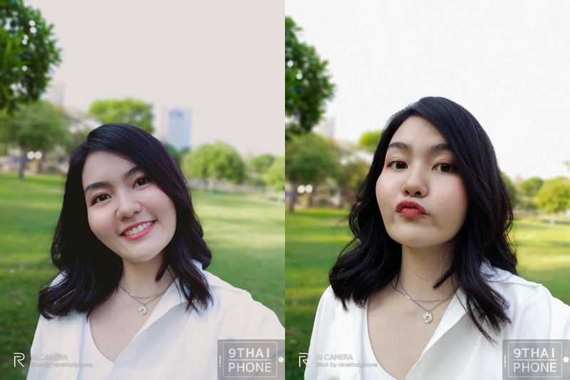 รองรับ AI Beauty สามารถปรับแต่งความสวยงามตามเอกลักษณ์เฉพาะบุคคล ปรับได้ 100 ระดับเช่นเดียวกัน แต่จะพิเศษตรงที่สามารถเลือกปรับบนใบหน้าได้อีกหลายแบบ เช่น ใบหน้าสวยเนียน, ใบหน้าเรียว, ใบหน้าเล็ก, ปรับรูปคาง, ปรับดวงตาให้กลมโต, ปรับรูปทรงจมูก, การเก็บรายละเอียดโดยรวม และการสร้างมิติภาพให้โดดเด่นแบบ 3 มิติ หรือจะรีเซ็ตตั้งค่าให้ระบบ AI ปรับแต่งแบบอัตโนมัติเลยก็ได้ โดยสังเกตเห็นได้ที่จุดวงกลมเล็ก ๆ รวมถึงมีฟิลเตอร์สีเก๋ ๆ ให้เลือกใช้งานด้วย