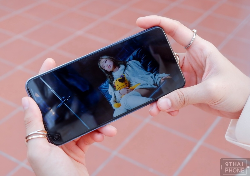 ด้านหน้า ใช้จอแสดงผล IPS LCD แบบ Ultra Smooth ขนาดใหญ่เต็มตา 6.5 นิ้ว ความละเอียดระดับ Full HD+ จอมีอัตราส่วน 20:9 สัดส่วนหน้าจอต่อตัวเครื่องอยู่ที่ 90.7% ค่าความสว่าง 480nits พร้อมครอบด้วยกระจก Corning Gorilla Glass หน้าจอสามารถใช้งานได้กว้างเต็มตา จะดูหนัง ดูละคร เล่นเกม หรือท่องโซเชียลต่าง ๆ ก็ใช้งานได้อย่างสะดวกสบายเลยค่ะ