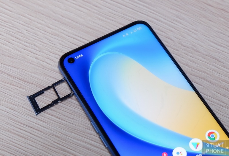 ถาดใส่ซิมการ์ดของ realme 7 5G เป็นแบบ 2 ช่อง รองรับการใช้งาน 2 ซิมการ์ด และรองรับ microSD Card ด้วย แต่จะต้องเลือกเอานะคะว่าจะใช้งานในรูปแบบไหนระหว่าง SIM 1 + SIM 2 หรือ SIM 1 + microSD Card