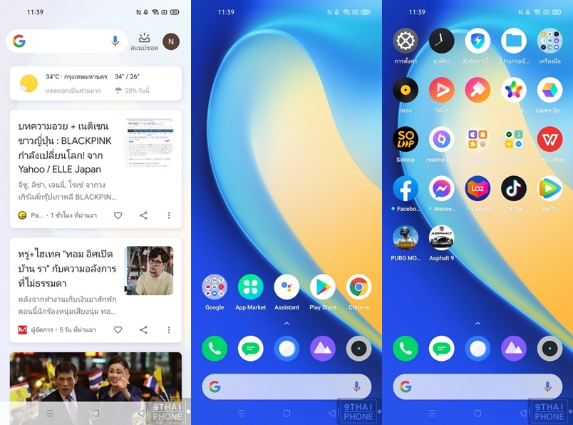 หลังจากปลดล็อกหน้าจอเข้ามาแล้ว จะพาเข้าสู่หน้า Home Screen ที่มีมาให้จำนวน 3 หน้า สามารถเพิ่มหน้าใช้งานได้เองภายหลัง แอปฯ ที่ติดตั้งมากับตัวเครื่องถูกจัดวางเป็นระเบียบไม่รก UI แบบใหม่จาก realme ภายใต้ระบบปฏิบัติการ Android 10 ให้สีสันสดใส และสามารถปรับแต่งไอคอนได้เอง
