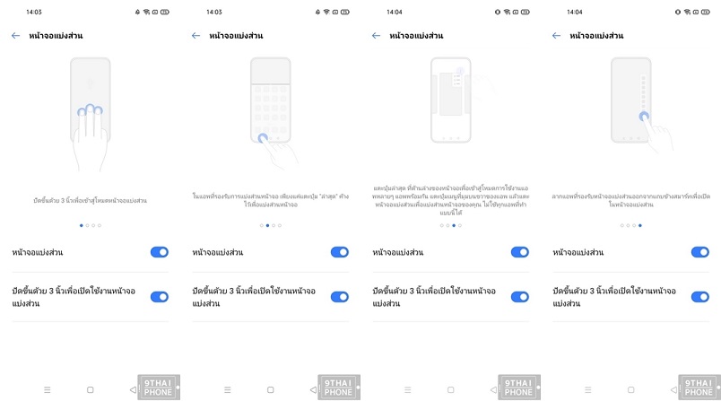 รองรับฟังก์ชัน Split Screen หรือโหมดการใช้งาน 2 หน้าจอ สามารถทำได้หลายรูปแบบ อาทิ ใช้ 3 นิ้วลากบนหน้าจอ และกดไปที่ปุ่ม Recent Apps เป็นต้น