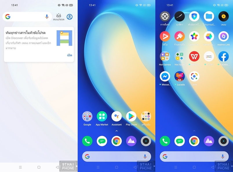 มี Hot Apps และ Hot Game แนะนำเกมหรือแอปฯ ยอดนิยม รองรับ realme Link เชื่อมโยงอุปกรณ์ต่าง ๆ กับสมาร์ตโฟนได้อย่างง่ายดาย และหากกดค้างไปที่ปุ่มพาวเวอร์ข้างตัวเครื่องจะเป็นการเรียกใช้งาน Google Assistant แบบเร่งด่วน