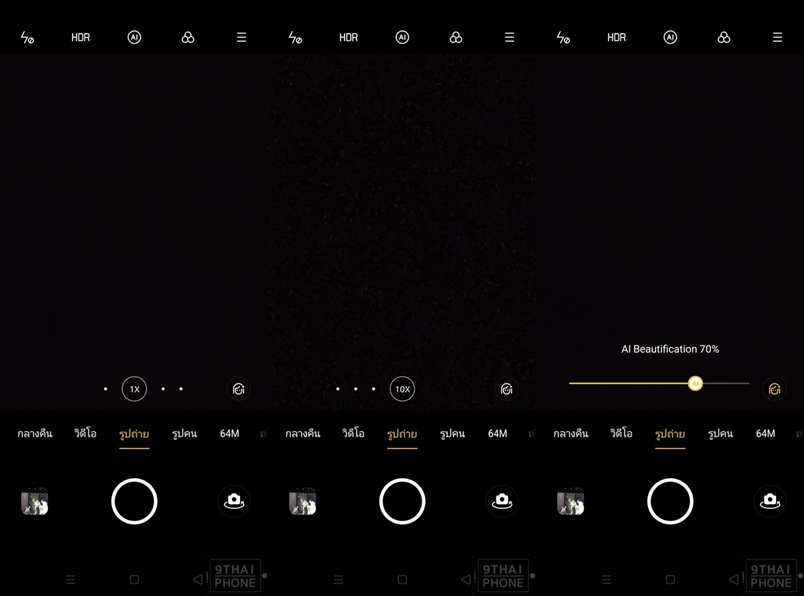โหมดถ่ายภาพปกติ ซูมได้สูงสุด 10 เท่า รองรับ AI Beauty สำหรับเพิ่มความขาวเนียนหากถ่ายภาพบุคคล