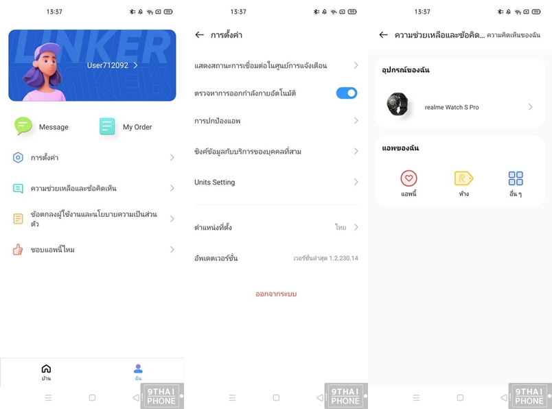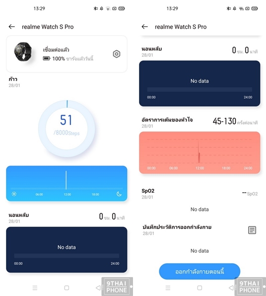 คราวนี้เราจะมาดูกันที่ Interface บนแอปฯ realme Link หลังจากที่เราเชื่อมต่อแอปฯ กับอุปกรณ์ realme Watch S Pro เสร็จแล้วกันบ้างนะคะ โดยหน้าแรกจะโชว์การก้าวเดินในแต่ละวันขึ้นมา และยังสามารถติดตามผลขณะนอนหลับ, อัตราการเต้นของหัวใจ, อัตราระดับออกซิเจนในเลือด และบันทึกประวัติการออกกำลังกายทั้งหมดได้ทันที และเมื่อกดไปที่รูปของ realme Watch S Pro จะปรากฏเมนูการตั้งค่าใช้งานสมาร์ทวอทช์ทั้งหมดขึ้นมาค่ะ