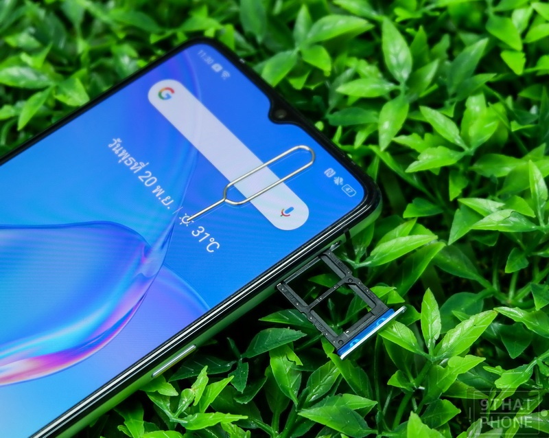 ด้านหน้าส่วนบน มีรอยบากทรงหยดน้ำแบบ Super Tiny Dewdrop โดยเป็นจุดติดตั้งของเลนส์กล้องหน้าเซลฟี่ความละเอียด 16MP มาพร้อมโหมดถ่ายภาพ AI Beauty ที่สามารถจดจำได้มากกว่า 296 จุดบนใบหน้า และสามารถปรับแต่งความสวยงามตามเอกลักษณ์เฉพาะบุคคล และรองรับ Selfie Nightscape ส่วนรายละเอียดเดี๋ยวเราจะไปทำความรู้จักกันในส่วนของโหมดการใช้งานกล้องถ่ายภาพกันค่ะ