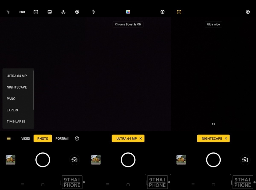 มาดูกันที่โหมดการใช้งานพิเศษกันบ้าง เริ่มที่ Ultra 64MP ถ่ายภาพสุดคมชัดเลนส์ Samsung GW1 เพิ่มความคมชัดสดใสให้ภาพถ่าย รองรับการเปิดใช้งานควบคู่ไปกับ Chroma Boost, โหมด Nightscape เพิ่มความสว่างของแสงได้อย่างเป็นธรรมชาติ ลดนอยส์ ใช้เวลาสั้นในการจับภาพ ถ่ายภาพในที่แสงน้อยได้อย่างคมชัด