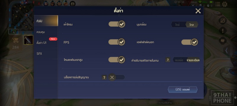 ก่อนเข้าเกมเราเปิดใช้งานโหมดเฟรมเรทที่ระดับสูง และ 60 FPS