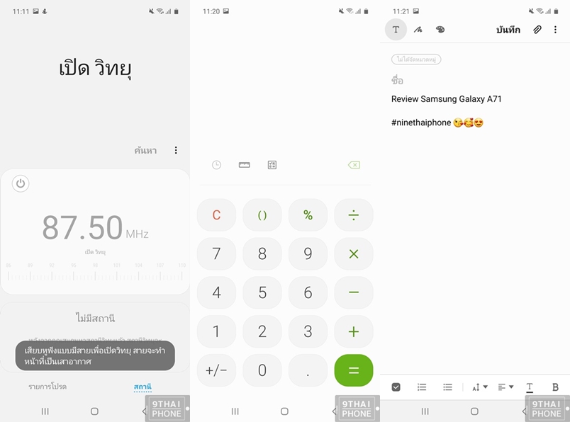 วิทยุ FM, เครื่องคิดเลข และ Samsung Notes