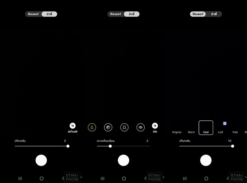 นอกจากนี้ยังรองรับ Beauty Mode ที่สามารถปรับได้อัตโนมัติ หรือจะเลือกปรับฟิลเตอร์เฉพาะส่วนก็ได้ ไม่ว่าจะเป็น ความเรียบเนียน, สีผิว, รูปกราม และความกลมโตของดวงตา พร้อมมีฟิลเตอร์สีสวย ๆ ให้ใช้งานด้วย