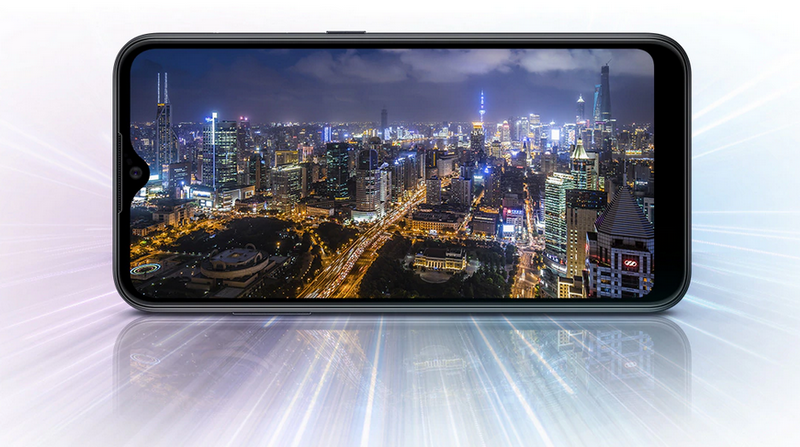 • Infinity-V Display ให้คุณรับชมสิ่งต่าง ๆ ได้มากยิ่งขึ้น เล่นเกมได้นานหลายชั่วโมง, สตรีมดูซีรีส์ได้ทั้งซีซัน หรือทำงานหลายอย่างมากขึ้นได้พร้อม ๆ กันด้วยหน้าจอ HD+ TFT 5.7 นิ้วของ Galaxy A01 รอยเว้ากล้องหน้ารูปตัววีขนาดเล็กของ Infinity-V Display ช่วยให้คุณได้สัมผัสกับมุมมองที่กว้างขึ้นและประสบการณ์ที่สมจริงกว่าเดิม
