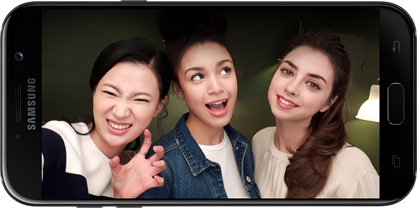 – Capture life in optimal light ด้วยแฟลชกล้องหน้าเซลฟี สวย คมชัด แม้ในเวลากลางคืน และปุ่มชัตเตอร์ที่เคลื่อนตำแหน่งได้ กดถ่ายภาพถนัดมากกว่า ไม่ว่าจะถือมุมไหน *รูปภาพบนหน้าจอที่ถ่ายด้วย Galaxy A7 (2017)