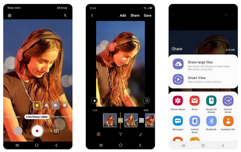 • AR Doodle สร้างจินตนาการศิลปะของคุณในมิติใหม่ วาดภาพ 3 มิติด้วย AR Doodle ผ่านปากกา S Pen ให้ศิลปะของคุณสามารถเคลื่อนไหวตามใบหน้า และพื้นที่รอบตัวคุณ ทำให้วีดีโอยิ่งดูน่าสนใจ