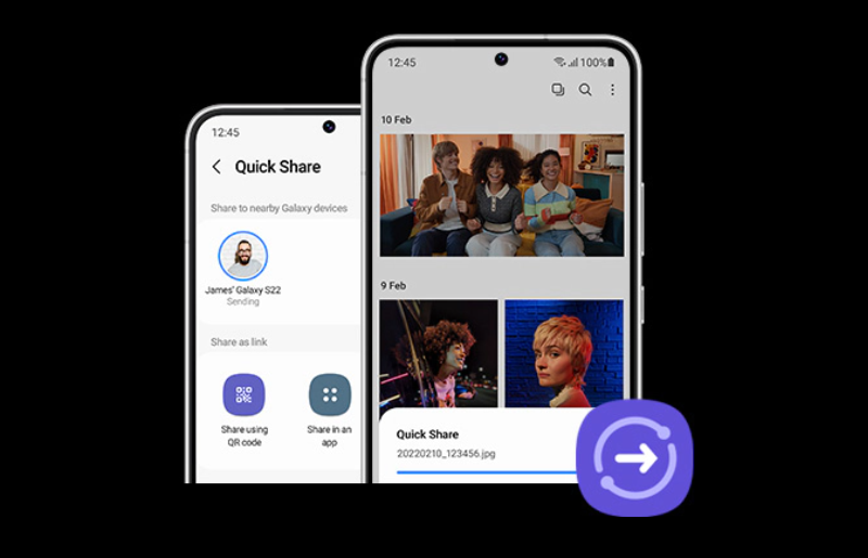 • แชร์ภาพ, วิดีโอ และไฟล์ต่าง ๆ ระหว่างอุปกรณ์ได้ในสัมผัสเดียวด้วย Quick Share เพียงแค่เปิดการแชร์ขึ้นมา หันสมาร์ตโฟนของคุณ แล้วก็กดส่ง