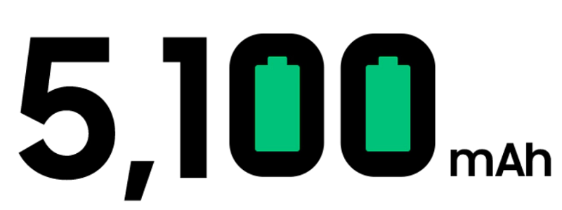 แบตเตอรี่ขนาด 5,100mAh* หมดกังวลเรื่องการชาร์จแบตเตอรี่ในระหว่างวัน เมื่อคุณต้องออกไปข้างนอกหรือรับชมสิ่งบันเทิงเป็นเวลานาน