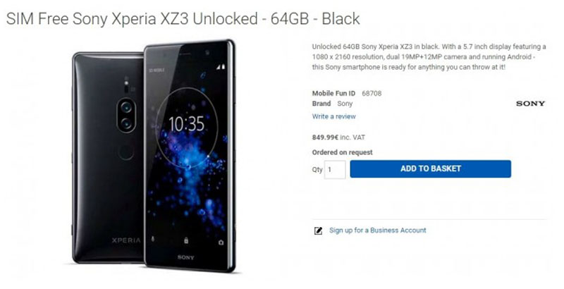 ก่อนหน้านี้มีข่าวหลุดของสมาร์ทโฟนภายใต้รหัสรุ่น H8416 และ H861 ที่มาพร้อมกับกล้อง 4 ตัว และรัน Android P ที่คาดว่าจะเป็น Sony Xperia XZ3 ที่มีข่าวว่าจะเปิดตัวในงาน IFA 2018 ล่าสุดได้มีร้านค้าปลีกออนไลน์ในประเทศอังกฤษอ้างว่ามีข้อมูลสเปคเครื่อง ราคาของ Sony Xperia XZ3 และพร้อมเปิดให้สั่งจองล่วงหน้าก่อนเปิดตัวอีกด้วย