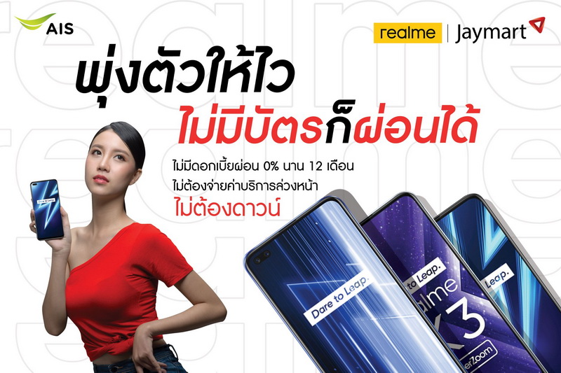 พลาดไม่ได้กับโปรโมชั่น Super Hot Deal ให้เป็นเจ้าของ realme 6 Pro, realme X3 SuperZoom และ realme X50 5G ได้ง่าย ๆ พร้อมโปรโมชั่นรายเดือนราคาดี Jaymart ช่วยคุณผ่อนสบาย จ่ายเบา ๆ ไม่ต้องมีบัตรเครดิตก็ผ่อนได้