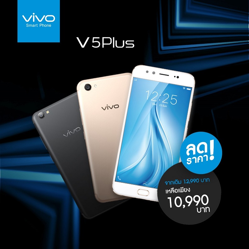 vivo V5 Plus 20MP* Dual Front Camera จัดหนักจัดเต็ม ลดราคาอีกครั้งเหลือเพียง 10,990 บาท