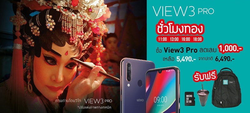 – พิเศษสุดเฉพาะร้านค้าที่ร่วมรายการช่วงชั่วโมงทอง ซื้อสมาร์ทโฟน Wiko View 3 Pro รับส่วนลดทันที 1,000 บาท เหลือเพียง 5,490 บาท เพียง 4 รอบต่อวัน (11.00, 13.00, 16.00 และ 18.00 น.)